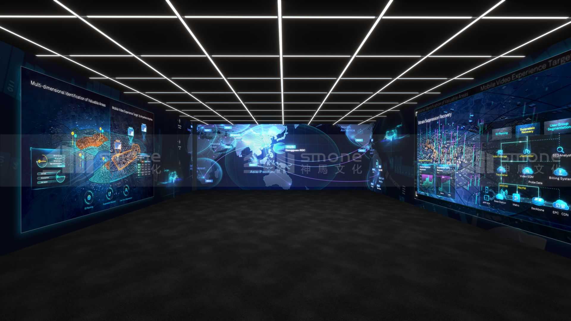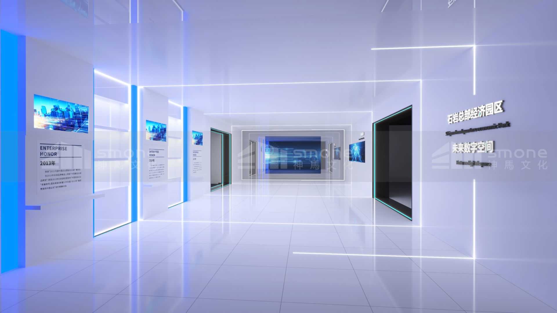 神馬文化將未來數(shù)字空間作為石巖總部經(jīng)濟園區(qū)的科技名片,通過多媒體數(shù)字技術(shù)全面打造,讓參觀者以智能感、沉浸感、科技感、未來感四個維度全面感知數(shù)字科技世界。